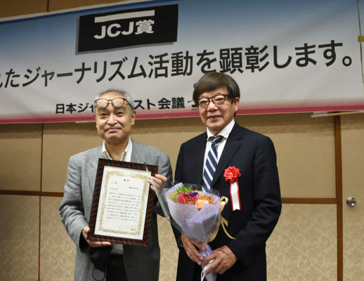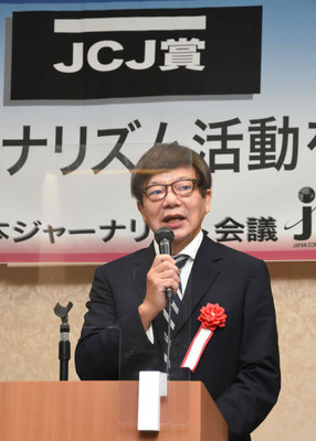 日本ジャーナリスト会議賞の贈賞式で西嶋真司氏は次のようにあいさつした。
